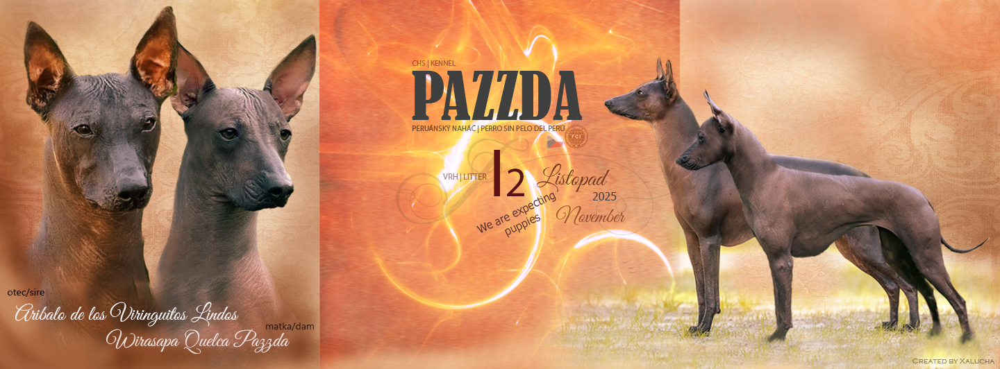 S radostí oznamujeme očekávaný vrh v chov. stanici PAZZDA. Maminkou bude Wirasapa Quelca Pazzda a otcem německý pes Aribalo de los Viringuitos Lindos. Doufáme v narození štěňátek střední velikosti, ale samozřejmě, že na velikosti úplně nezáleží, hlavní je, aby maminka i štěňata byla v pořádku. Vrh očekáváme na začátku listopadu.